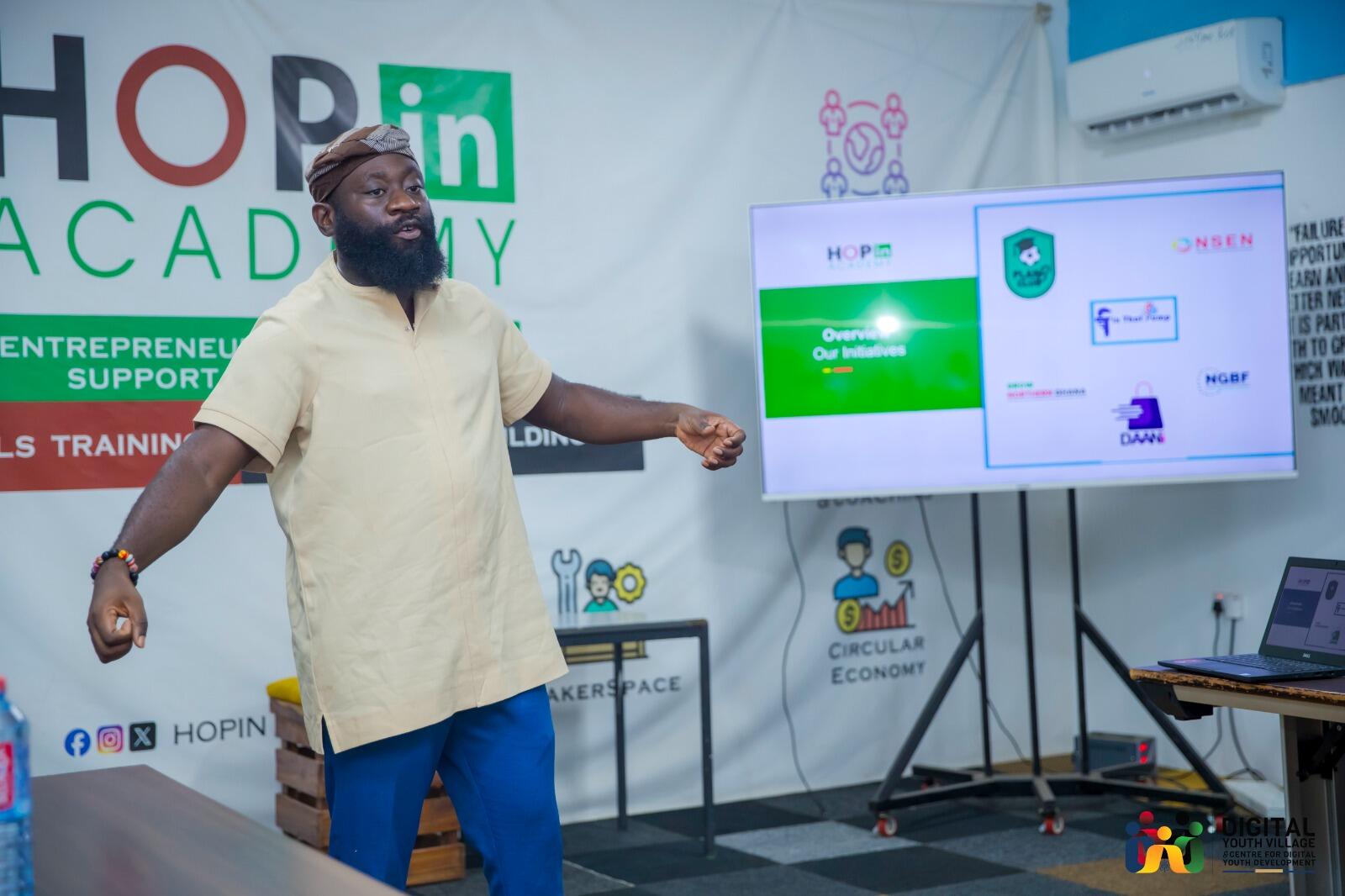 The study tour commenced with a visit to HOPin Academy, one of Tamale’s leading entrepreneurial hubs. Since its establishment in 2013, HOPin Academy has supported nearly 200 startups and developed over 36 partnerships, playing a pivotal role in the region’s innovation landscape. During the visit, the DYV team introduced the Village’s mission and reiterated its commitment to providing national access to digital tools, skills development, and startup support.